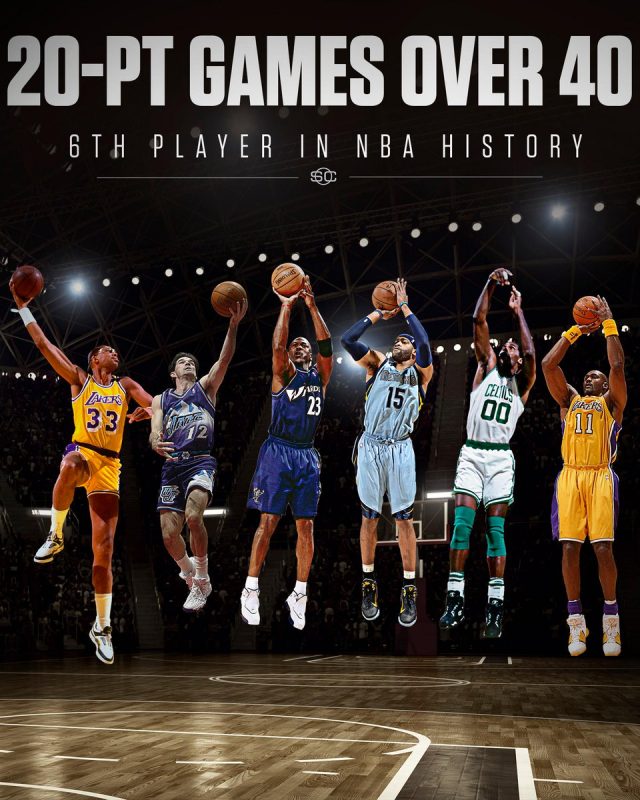 Συγκεκριμένα, εκείνη την ημέρα, ο παλαίμαχος πλέον άος, έγινε ο έκτος παίκτης στην ιστορία του ΝΒΑ που πετυχαίνει 20+ πόντους έχοντας κλείσει τα 40 και προστέθηκε στο κλαμπ των Μάικλ Τζόρνταν, Καρίμ Αμπντούλ Τζαμπάρ, Τζον Στόκτον, Ρόμπερτ Πάρις και Καρλ Μαλόουν.