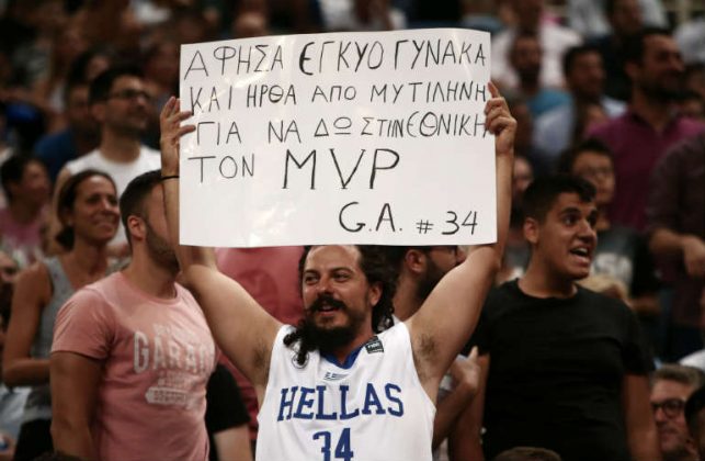 Ένας φίλαθλος της Εθνικής Ελλάδας και φανατικός λάτρης του Γιάννη Αντετοκούνμπο άφησε στη Μυτιλήνη την έγκυο γυναίκα του για να δει από κοντά τον φετινό ΜVP του ΝΒΑ!