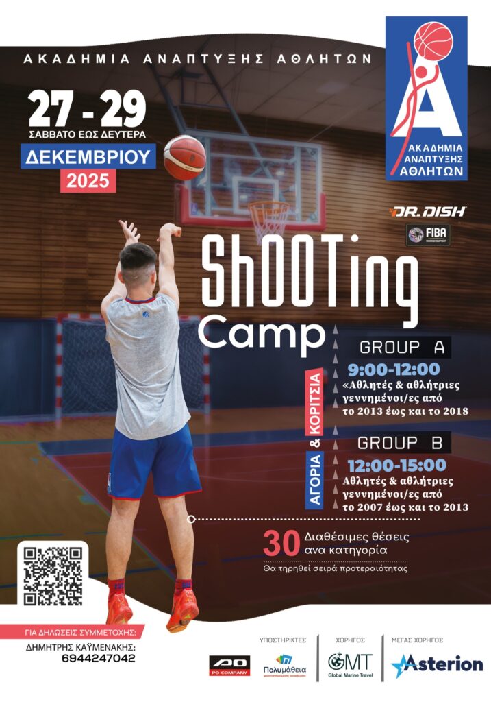 Η Ακαδημία Ανάπτυξης Αθλητών ανεξαρτήτως ομάδας που ανήκουν οι αθλητές/τριες ανοίγει τις πύλες της στο Γήπεδο «Σπύρος Λούης» για τρεις ημέρες εντατικής προπόνησης, υψηλής τεχνικής κατάρτισης και εξειδίκευσης στο σουτ, το πιο κρίσιμο «όπλο» του σύγχρονου μπάσκετ!