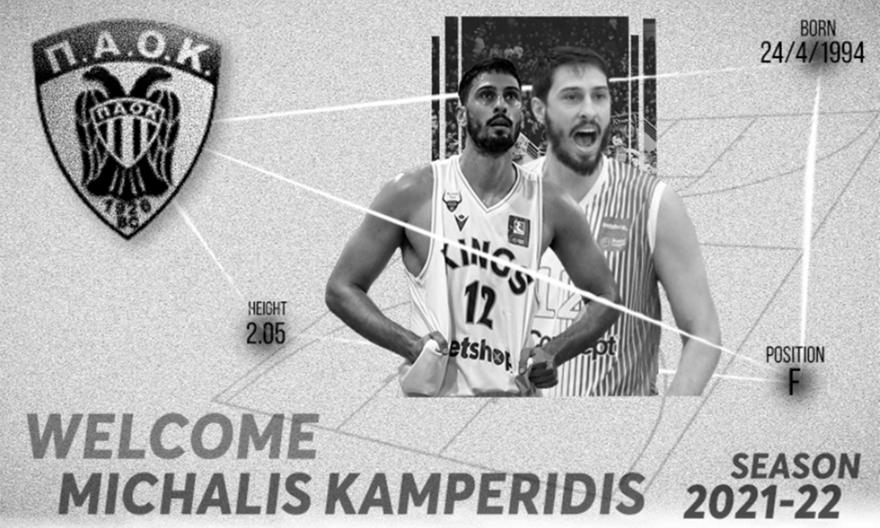 «Η ΚΑΕ ΠΑΟΚ ανακοινώνει τη συμφωνία με τον Μιχάλη Καμπερίδη. Ο 27χρονος καλαθοσφαιριστής θα υπογράψει συμβόλαιο ενός έτους με την ομάδα μας. Καλωσορίζουμε το Μιχάλη Καμπερίδη στην μεγάλη οικογένεια του ΠΑΟΚ, όπου εκτός όλων των άλλων θα συναντήσει και τον αδερφό του Γιώργο!