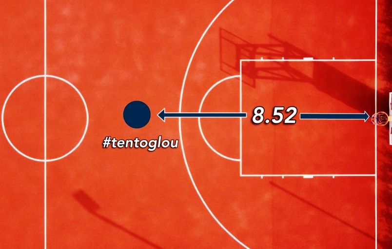 Ουσιαστικά ο Τεντόγλου πάτησε δύο μέτρα πίσω από τη γραμμή του τριπόντου και προσγειώθηκε εκτός γραμμής, με τον ΑΟ Μυκόνου να εξηγεί με τον πιο ευφάνταστο, αλλά ταυτόχρονα και πιο απλό τρόπο τι πραγματικά πέτυχε ο 24χρονος πρωταθλητής.
