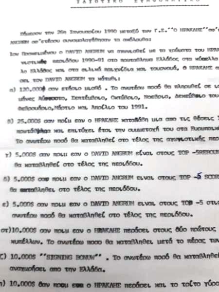 Ένα σπάνιο ντοκουμέντο ήρθε στο φως της δημοσιότητας με τον πρόεδρο του Γ.Σ Ηρακλή, Φώτη Θέο, να αποκαλύπτει το συμφωνητικό που είχε υπογράψει ο Ντέιβιντ Ίνκγραμ με τον «Γηραιό» το 1990.