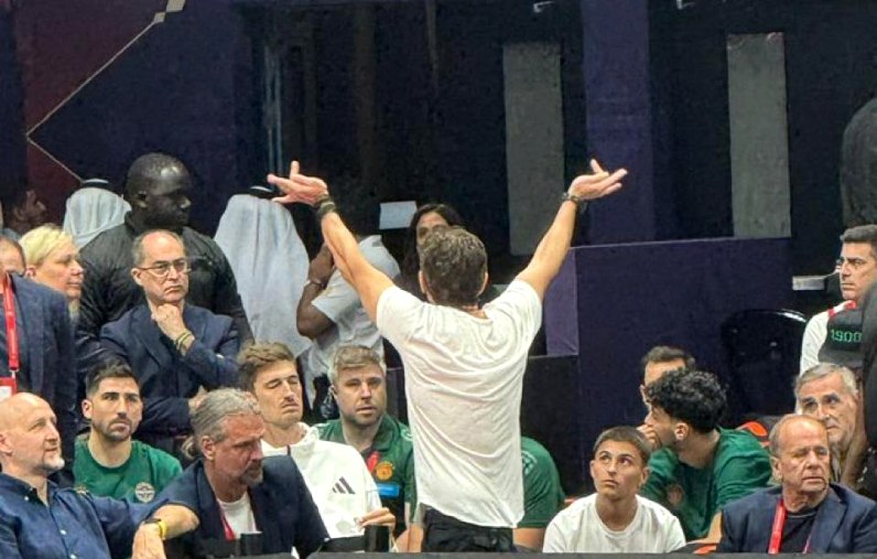 Ο ιδιοκτήτης της ΚΑΕ Παναθηναϊκός παρέμεινε συνεχώς όρθιος στην Etihad Arena, φωνάζοντας προς τους διαιτητές, ενώ στο φινάλε του πρώτου μέρους τούς τους πήρε στο… κυνήγι για να διαμαρτυρηθεί.