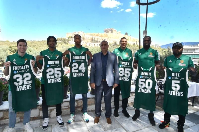 Μπεν Μπέντιλ, Ράιον Μπράουν, Τζίμερ Φριντέτ, Ουέσλι Τζόνσον, Ταϊρίς Ράις και Τζέικομπ Ουάιλι παρουσιάστηκαν στους εκπροσώπους του Τύπου, με τον Μάνο Παπαδόπουλο να καλωσορίζει άπαντες, «δικαιολογώντας» το σημείο που επιλέχθηκε, αφού, όπως είπε, «ο Παναθηναϊκός είναι η ομάδα – σύμβολο της Αθήνας».