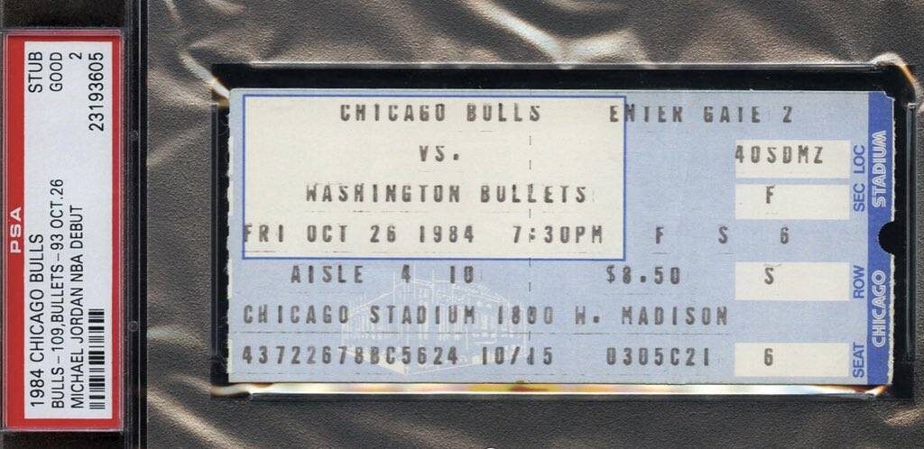 Ένα απόκομμα εισιτηρίου από το ντεμπούτο του έξι φορές πρωταθλητή του ΝΒΑ, Μάικλ Τζόρνταν στο πρωτάθλημα, πουλήθηκε σήμερα σε δημοπρασία αντί του ποσού των 264.000 δολαρίων.