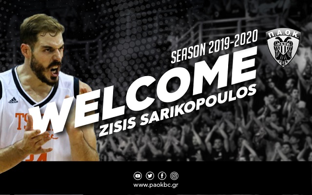 “Η ΚΑΕ ΠΑΟΚ ανακοινώνει την συμφωνία με τον διεθνή σέντερ Ζήση Σαρικόπουλο, ο οποίος θα αγωνιστεί στην ομάδα την αγωνιστική περίοδο 2019-2020.