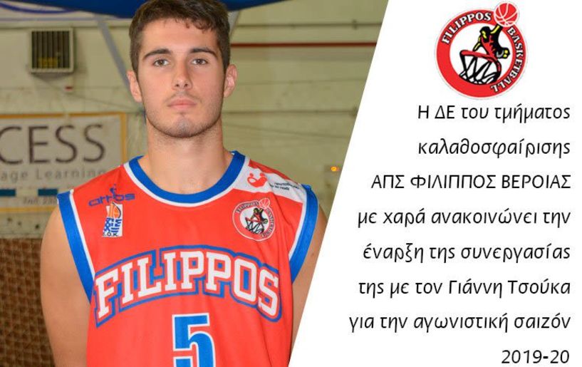 «Η ΔΕ του τμήματος καλαθοσφαίρισης του ΑΠΣ ΦΙΛΙΠΠΟΣ ΒΕΡΟΙΑΣ με χαρά ανακοινώνει την έναρξη της συνεργασίας της με τον Γιάννη Τσούκα για την αγωνιστική σαιζόν 2019-20. Ο νεαρός Γρεβενιώτης PG/SG (1.91, 1998) ετοιμάζεται για τη δεύτερη θητεία του στη Β’ Εθνική με την ομάδα μας, καθώς αποτέλεσε μέλος του ρόστερ και κατά την αγωνιστική περίοδο 2016-17. Του ευχόμαστε ολόψυχα υγεία και πολλές επιτυχίες».