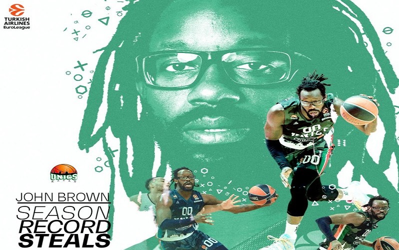 Ο Τζον Μπράουν της Ούνικς Καζάν έσπασε ένα… στοιχειωμένο ρεκόρ, καθώς με τα 5 κλεψίματα που έκανε κόντρα στη Ζαλγκίρις, ξεπέρασε την επίδοση του Μανού Τζινόμπιλι με τα περισσότερα σε μία σεζόν, που κρατούσε από την περίοδο 2000-2001, πρώτη στην ιστορία της Euroleague.