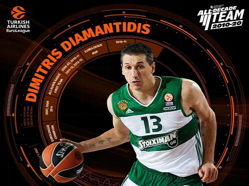 Μετά τους Κάιλ Χάινς, Χουάν Κάρλος Ναβάρο και Λούκα Ντόνσιτς, ο Δημήτρης Διαμαντίδης είναι το 4ο μέλος της All Decade Team της Euroleague.