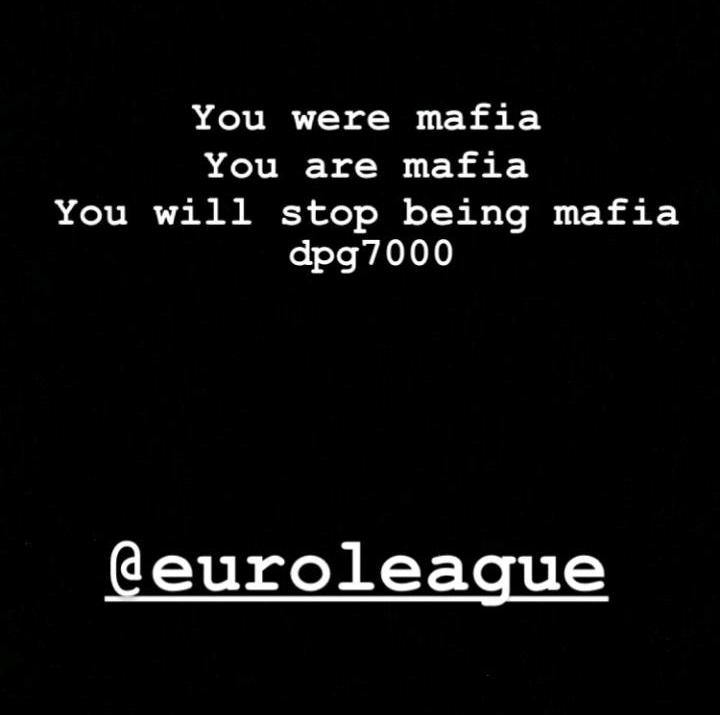 Ο Δημήτρης Γιαννακόπουλος εξέφρασε μέσω story στο Instagram τα έντονα παράπονά του για τα σφυρίγματα των διαιτητών στο Game 4 με την Εφές όπου ο Παναθηναϊκός ηττήθηκε στις λεπτομέρειες 85-82, αναφέροντας για την Ευρωλίγκα «ήσασταν μαφία, είστε μαφία, θα σταματήσετε να είστε μαφία».