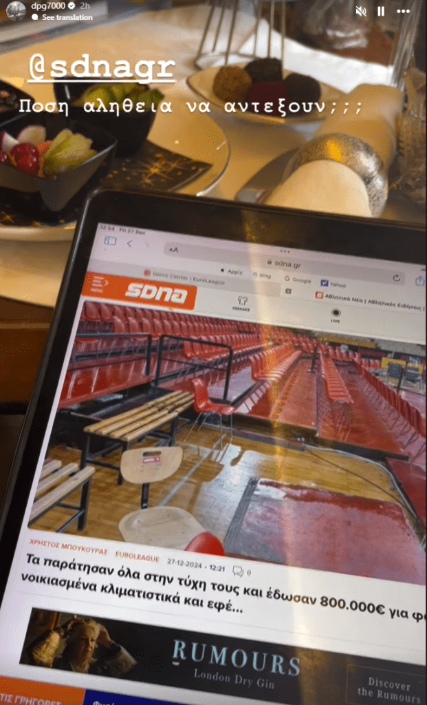 «Πόση αλήθεια να αντέξουν;» έγραψε χαρακτηριστικά ο ισχυρός άνδρας του Παναθηναϊκού, επιλέγοντας ως background ε ένα άρθρο του SDNA με τίτλο: «Tα παράτησαν όλα στην τύχη τους και έδωσαν 800.000€ για νοικιασμένα κλιματιστικά και εφέ…».