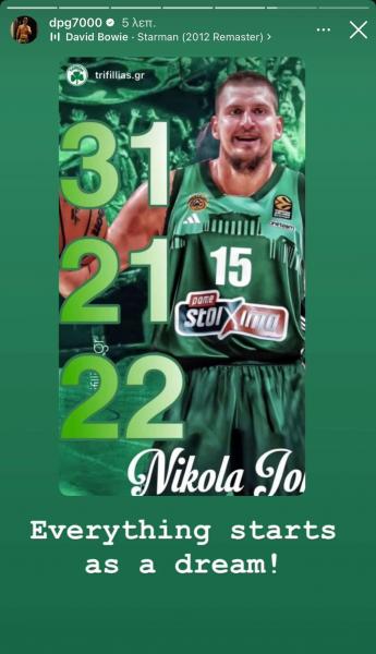 Ο Δημήτρης Γιαννακόπουλος δεν κρύβει τον θαυμασμό του για τον Νίκολα Γιόκιτς και το απέδειξε ξανά μέσα από ένα νέο story στο Instagram, αναφερόμενος στον Σέρβο σούπερσταρ του ΝΒΑ.