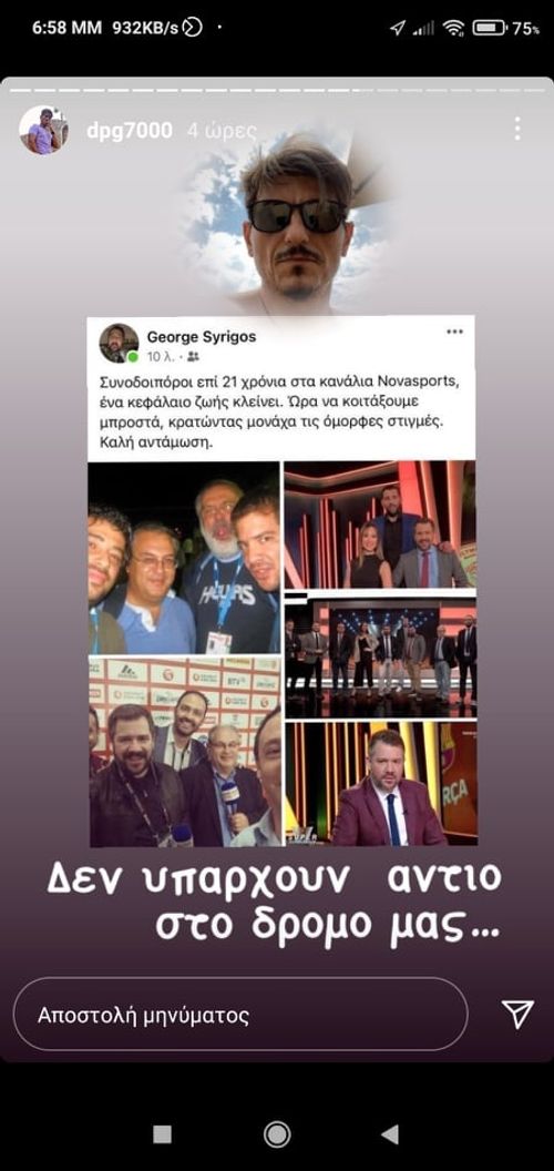Ο Γιώργος Συρίγιος δεν θα βρίσκεται από τη νέα σεζόν στα κανάλια NovaSports, με τον ίδιο να ενημερώνει μέσα από τα social media για αυτή την εξέλιξη.