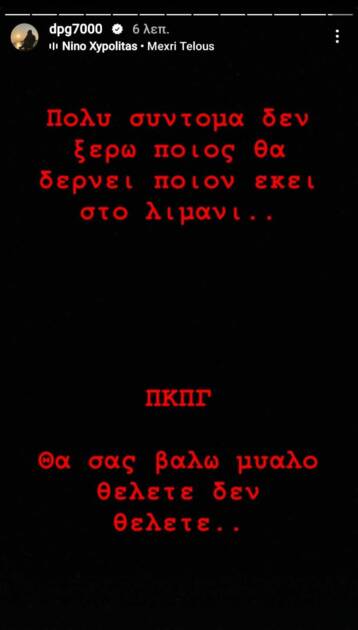 «Πολύ σύντομα δεν ξέρω ποιος θα δέρνει ποιον εκεί στο λιμάνι. ΠΚΠΓ. Θα σας βάλω μυαλό θέλετε δεν θέλετε…» έγραψε ο ισχυρός άντρας της ΚΑΕ Παναθηναϊκός.