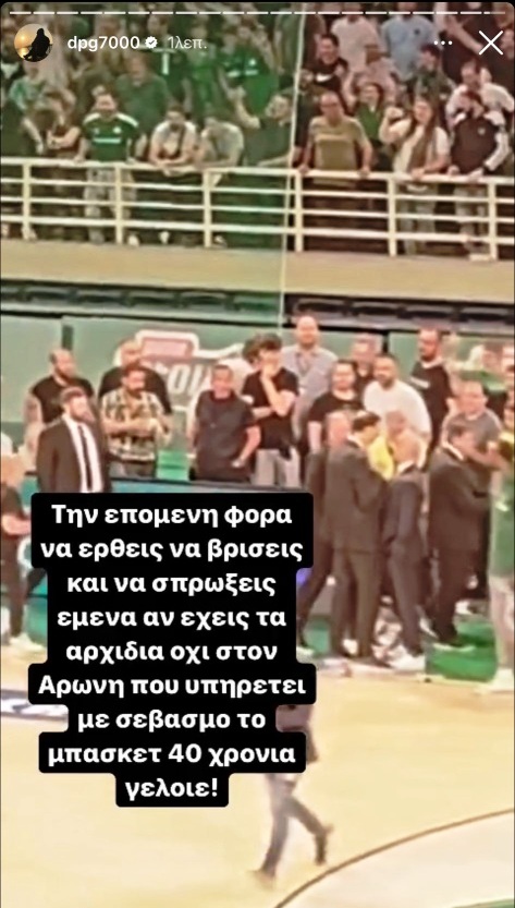 Με αφορμή συτό το σκηνικό, ο Δημήτρης Γιαννακόπουλος δημοσίευσε στα social media το σχετικό στιγμιότυπο αναφέροντας χαρακτηριστικά απευθυνόμενος στον προπονητή του Ολυμπιακού: «Την επόμενη φορά να έρθεις να βρίσεις και να σπρώξεις εμένα αν έχεις τα @@δι@. Όχι στον Αρώνη που υπηρετεί με σεβασμό το μπάσκετ 40 χρόνια, γελοίε» ανέφερε χαρακτηριστικά ο μεγαλομέτοχος της ΚΑΕ.