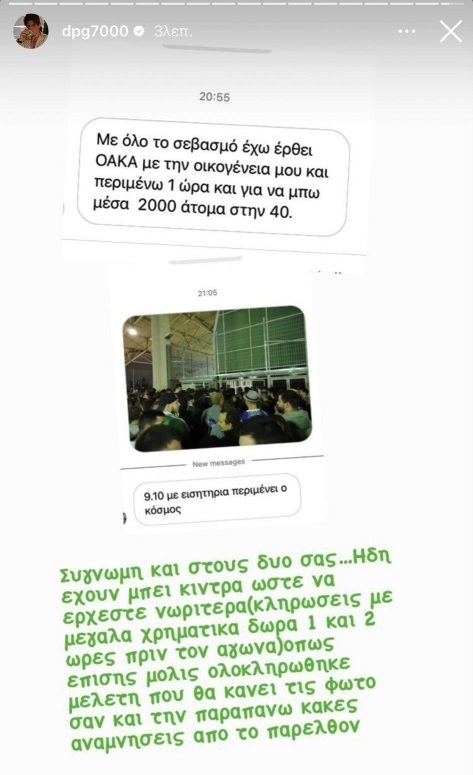 «Συγγνώμη και στους δύο σας. Ήδη έχουν μπει κίνητρα ώστε να έρχεστε νωρίτερα (κληρώσεις με μεγάλα χρηματικά ποσά 1 και 2 ώρες πριν τον αγώνα), όπως επίσης μόλις ολοκληρώθηκε μια μελέτη που θα κάνει τις φώτο σαν την παραπάνω κακές αναμνήσεις από το παρελθόν».