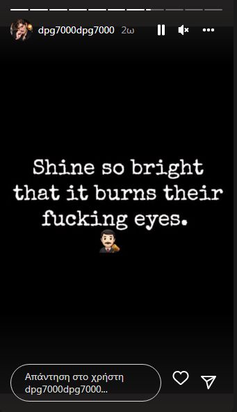 Συγκεκριμένα, ο μεγαλομέτοχος της ΚΑΕ Παναθηναϊκός, έγραψε στα stories του στο Instagram: «Λάμψε τόσο φωτεινά που θα κάψει τα γ@μ#μ€ν@ μάτια τους!» χωρίς να δίνει περισσότερες πληροφορίες για το τι εννοεί.