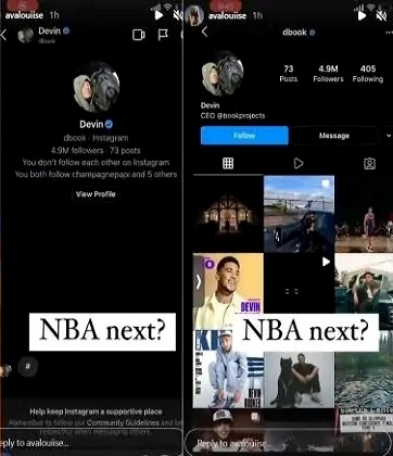 Τον μπελά του πάει να βρει ο Ντέβιν Μπούκερ, καθώς η Άβα Λουίζ, η οποία κάνει καριέρα μοντέλου στο Onlyfans, ανέβασε screenshot στο οποίο ο σούτινγκ γκαρντ των Φοίνιξ Σανς φαίνεται να ζητά τον αριθμό του τηλεφώνου της μέσω Instagram.