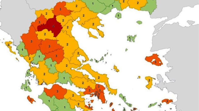 Σε κόκκινη περιοχή (επίπεδο 4) βρίσκεται μονάχα η Κοζάνη.