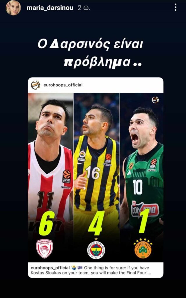 Έχουν προηγηθεί έξι με τον Ολυμπιακό και ένα με τη Φενέρμπαχτσε με τη σύζυγό του, Μαρία Δαρσινού. να γράφει χαρακτηριστικά στο Instagram: «Ο Δαρσινός είναι πρόβλημα» αναφερόμενη σε όσους συνδέουν τις αποφάσεις του διεθνή γκαρντ με τις δικές της προτροπές.