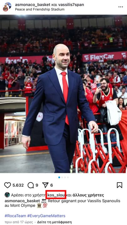 Οι Μονεγάσκοι επικράτησαν των «ερυθρολεύκων» το βράδυ της Πέμπτης και δημοσίευσαν φωτογραφίες του Βασίλη Σπανούλη στον επίσημο λογαριασμό τους στα social media, γράφοντας: «Νικηφόρα επιστροφή για τον Βασίλη Σπανούλη στον Όλυμπο».