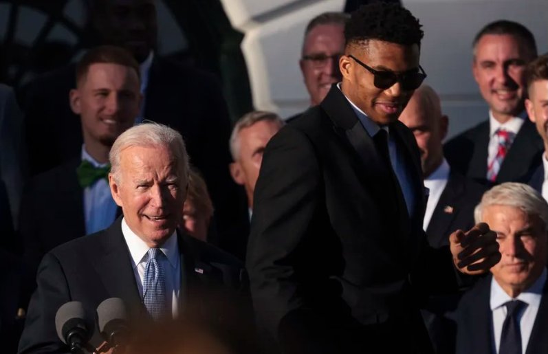 Κατά τη διάρκεια της ομιλίας του, ο Τζο Μπάιντεν μοίρασε συγχαρητήρια στα στους Μπακς, ενώ έκανε ειδική αναφορά στον μεγάλο σταρ της ομάδας, Γιάννη Αντετοκούνμπο, τον οποίο αποθέωσε.