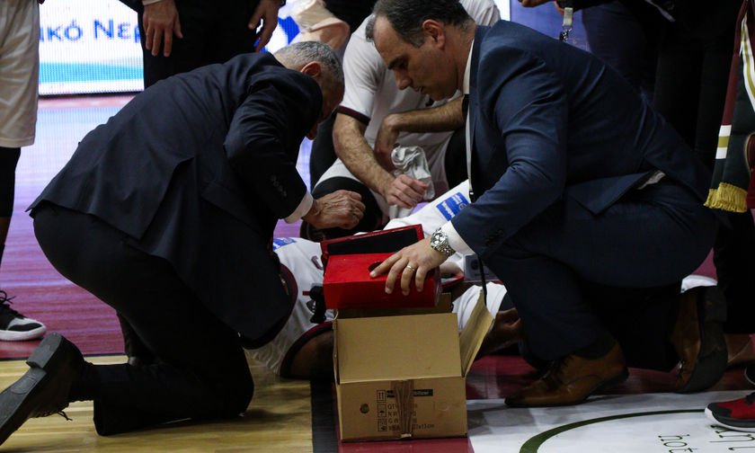 Ο Αμερικανός γκαρντ του Ηφαίστου χτύπησε στο πίσω μέρος του κεφαλιού κατά τη διάρκεια της 4ης περιόδου ύστερα από διεκδίκηση της μπάλας με αποτέλεσμα να νιώθει ζαλάδες. Διακομίστηκε στο νοσοκομείο για περαιτέρω εξετάσεις και, όπως ενημέρωσε αργότερα η ομάδα του, έχει υποστεί κάκωση οσφυικής μοίρας στη σπονδυλική στήλη και θα ακολουθήσει φαρμακευτική αγωγή και φυσικοθεραπείες, με το ιατρικό τιμ να παρακολουθεί συνεχώς την κατάστασή του.