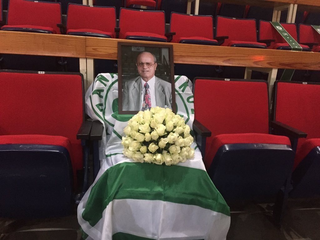 Συγκεκριμένα, οι «πράσινοι» φρόντισαν να μην αφήσουν κενή τη θέση του στα επίσημα τοποθετώντας στο κάθισμά του ένα μπουκέτο λευκά τριαντάφυλλα, μια σημαία της αγαπημένης του ομάδας και μια φωτογραφία του.
