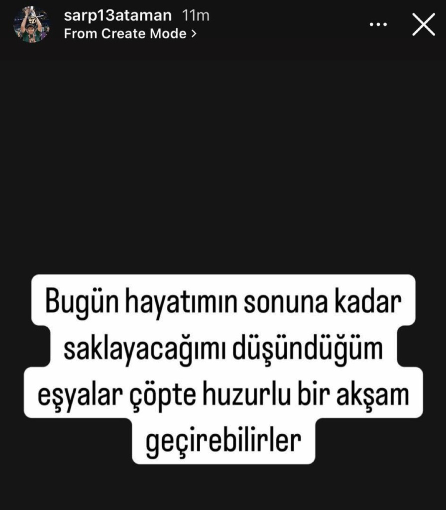Μέσα από τον προσωπικό του λογαριασμό στο Instagram, ο νεαρός έγραψε στα τουρκικά: