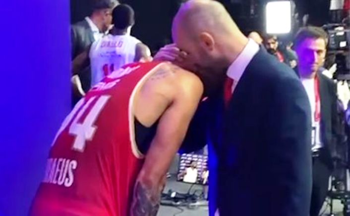 Ο Βασίλης Σπανούλης έσπευσε να παρηγορήσει τον Εβάν Φουρνιέ, όταν ο Γάλλος ξέσπσε σε λυγμούς μετά την ήττα του Ολυμπιακού από τη Μονακό.