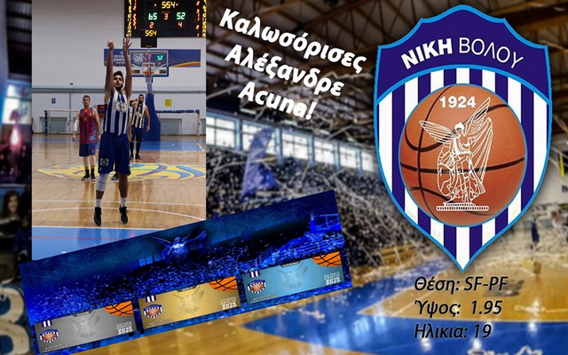 Η Δ.Ε. Καλαθοσφαίρισης της Νίκης Βόλου ανακοινώνει τη συμφωνία με τον αθλητή Αλέξανδρο Acuna.