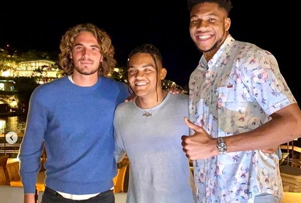 Με αναρτήσεις του στα social media, ο Γιάννης Αντετοκούνμπο, έκανε γνωστή την έξοδο στην Αθήνα μαζί με τον Στέφανο Τσιτσιπά και τον Εμμανουήλ Καραλή. Οι τρεις διάσημοι και κορυφαίοι στα αθλήματά τους Έλληνες, συνδέονται με στενή φιλία, ενώ αρκετές φορές έχουν ανταλλάξει μηνύματα στα μέσα κοινωνικής δικτύωσης, σε επιτυχίες τους.