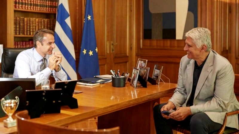 Τον Παναγιώτη Γιαννάκη υποδέχθηκε στο γραφείο του ο Κυριάκος Μητσοτάκης και μεταξύ άλλων μίλησαν για μπάσκετ.