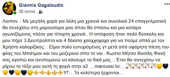 Δείτε το σχετικό ποστάρισμα του 41χρονου και αειθαλούς Γιάννη Γκαγκαλούδη: