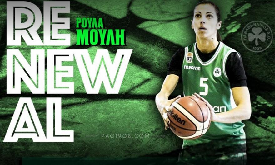 Με την πράσινη φανέλα θα αγωνίζεται και τη νέα σεζόν η 35χρονη γκαρντ Ρούλα Μούλη, καθώς ανανέωσε τη συνεργασία της με τον Παναθηναϊακό.