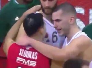 Συγκεκριμένα, κατά τη διάρκεια της ανταλλαγής χειραψιών μεταξύ των παικτών των δύο ομάδων (κάτι σύνηθες και απόλυτα φυσιολογικό σε κάθε είδους αθλητική αναμέτρηση) αμέσως μετά το τέλος του ντέρμπι, ο τηλεοπτικός φακός «συνέλαβε» τον Λευτέρη Μποχωρίδη να πιάνει φιλικά από τον λαιμό τον Κώστα Σλούκα και να γελά μαζί του.