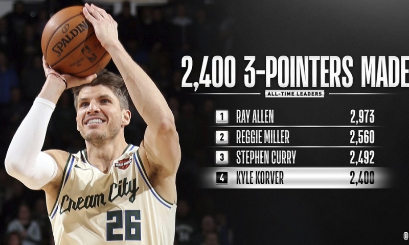 Ιστορία έγραψε ο Κάιλ Κόρβερ, καθώς αναρριχήθηκε στην 4η θέση των καλύτερων σουτέρ τριών πόντων στην ιστορία του ΝΒΑ.