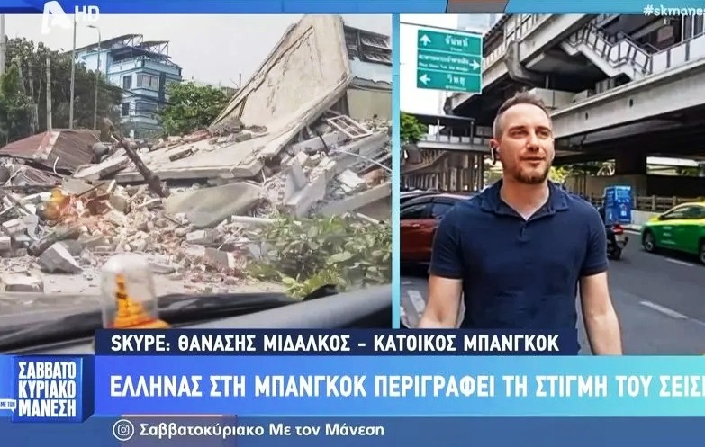 Στην εκπομπή του Νίκου Μάνεση στον Alpha φιλοξενήθηκε ο Θανάσης Μιδάλκος, ένας Έλληνας που βρέθηκε στην Μπανγκόκ για επαγγελματικούς λόγους τις τελευταίες ημέρες και βίωσε από κοντά τον ισχυρό σεισμό. Μέσω της σύνδεσής του με την εκπομπή, μετέφερε τις δραματικές στιγμές που εκτυλίχθηκαν κατά τη διάρκεια της σφοδρής δόνησης.