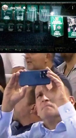 Συγκεκριμένα, ο ισχυρός άνδρας της ΚΑΕ Παναθηναϊκός ανέβασε μια φωτογραφία που δείχνει τον διοικητικό ηγέτη του Ολυμπιακού να φωτογραφίζει τα λάβαρα στο κλειστό γήπεδο μπάσκετ του ΟΑΚΑ.