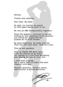 Πάντα ευγνώμων, πάντα δικό σας, πάντα με τους Ντάλας Μάβερικς».