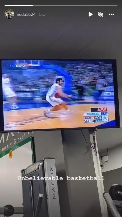 Ο Νεμάνια Νέντοβιτς ανέβασε ένα story στο instagram όπου φαίνεται να γυμνάζεται, βλέποντας έναν παλιό ντέρμπι ανάμεσα σε Παναθηναϊκό και Ολυμπιακό από την εποχή που ο Βασίλης Σπανούλης αγωνιζόταν με την πράσινη φανέλα.
