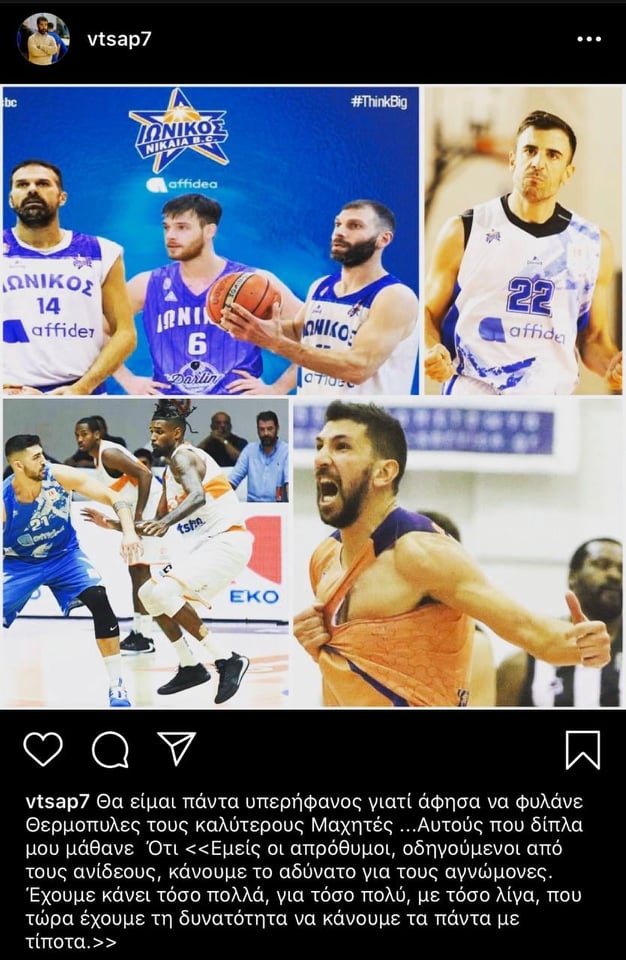 Το δικό του μήνυμα έστειλε ο Βαγγέλης Τσάπας μετά τη σπουδαία νίκη του Ιωνικού κόντρα στον Άρη, λέγοντας ότι είναι περήφανος επειδή άφησε να φυλάνε τις Θερμοπύλες καλοί μαχητές.