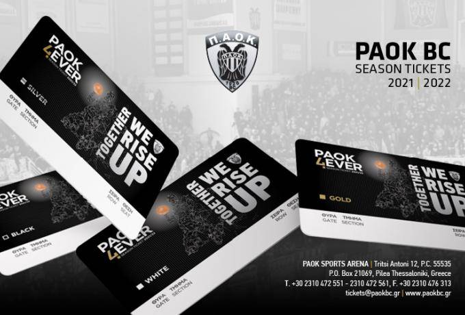 Η ΚΑΕ ΠΑΟΚ ανακοινώνει ότι από την Τετάρτη 14 Ιουλίου 2021 ξεκινάει η διάθεση των εισιτηρίων διαρκείας για την αγωνιστική περίοδο 2021-22.