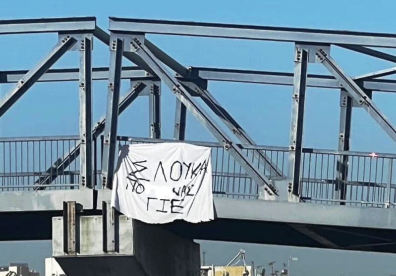 Λίγες ώρες πριν από το τζάμπολ (20:15) στο «αιώνιο» ντέρμπι του ελληνικού μπάσκετ, ένα πανό κατά του Κώστα Σλούκα σε αερογέφυρα δίπλα στο ΣΕΦ ήρθε να δυναμιτίσει κι άλλο το κλίμα.